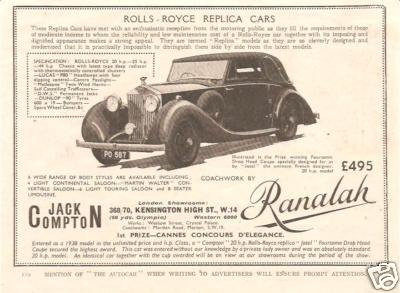 Oldtimer ... Rolls Royce, Twenty, 20 HP, 2 Door Drop Head by Ranalah, Chassis Nr. GYK 86 ... Home |